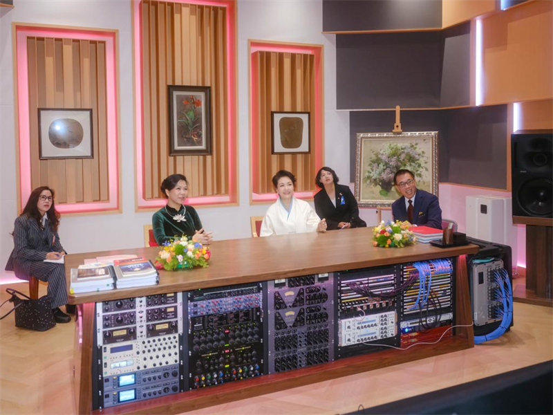Mme Peng et Ngo Phuong Ly ont visité l'opéra, l'espace de création de réalité virtuelle et le studio d'enregistrement, découvrant ainsi les actions du centre en faveur de la création artistique, de la prestation de services culturels et des échanges culturels internationaux. Lors de la visite, elles ont assisté aux répétitions d'un spectacle de danse ethnique chinoise et à une session d'enregistrement d'une chorale, s'arrêtant de temps à autre pour échanger leurs points de vue.