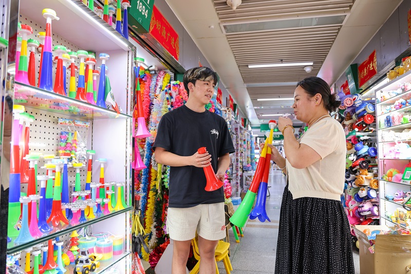 Les commandes arrivent, transformant cette plaque tournante de la fabrication de petits produits en une zone majeure pour la demande mondiale avant l'un des événements sportifs les plus populaires du monde. Hussein, homme d'affaires jordanien, a souligné que ce sera la première participation de son pays à la Coupe du monde, ce qui a stimulé l'enthousiasme de la consommation des fans locaux, et il espère donc sélectionner à l'avance des produits appropriés pour saisir le marché. Ram, un autre homme d'affaires étranger, a quant à lui noté que les produits diversifiés et les conceptions innovantes le font venir à Yiwu au moins deux à trois fois par an. Il prévoit également d'acheter et de passer des commandes à l'avance pour la Coupe du monde de l'année prochaine.